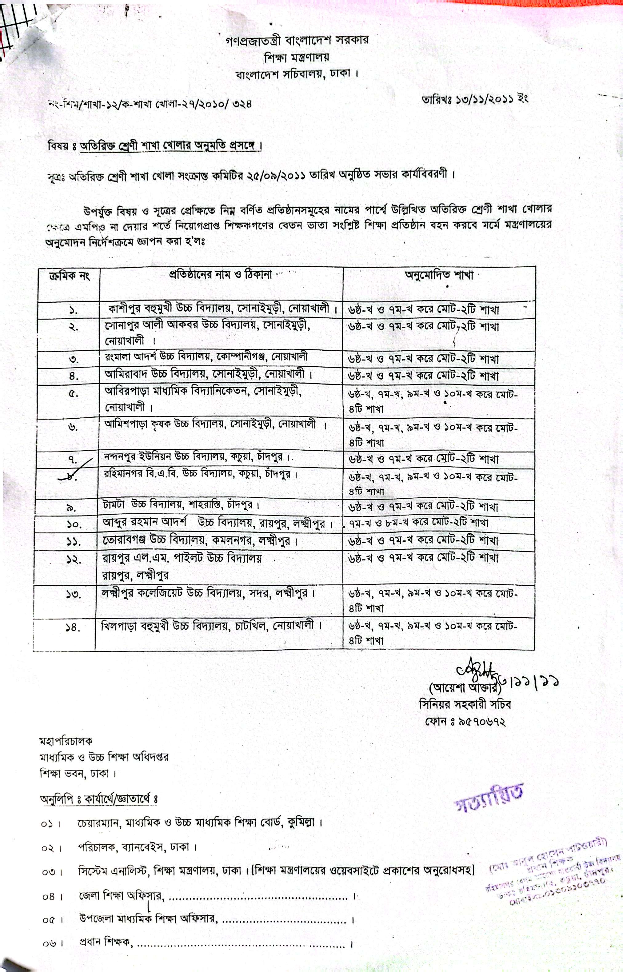 শ্রেণী ভিত্তিক অনুমোদিত শাখার তথ্য